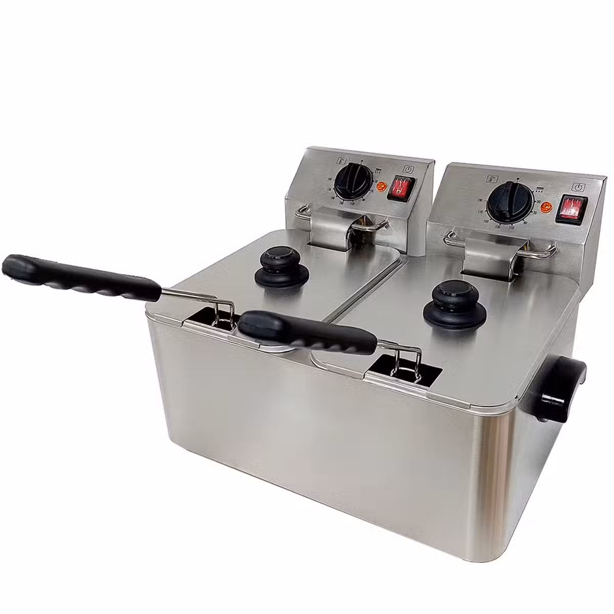 - Freidora profesional con 2 cubas de 4 litros de capacidad cada una, ideal para restaurantes y catering