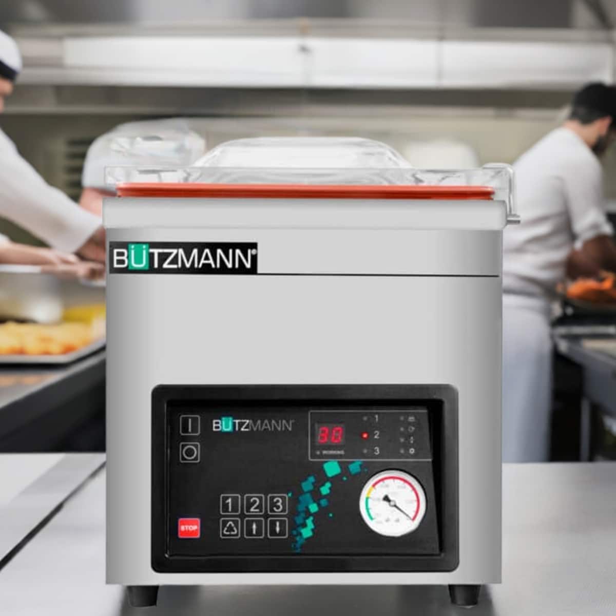 – Tecla STOP, que permite parar el proceso de envasado en cualquier fase del ciclo.